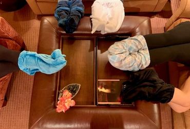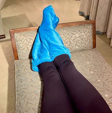 The CozyFeet is a newly designed patented foot warmer that creates a soothing, comforting experience for your feet. This unique US made cozy pouch is machine washable 100% polyester fleece which retains heat without producing moisture. This product contains an elastic band which maintains the CozyFeet in place without restricting circulation. With the CozyFeet, you can either swaddle your feet together or separately. The CozyFeet is the perfect foot warmer for anyone with cold feet! For people who suffer from neuropathy, the CozyFeet is a good alternative to existing foot warmers.
